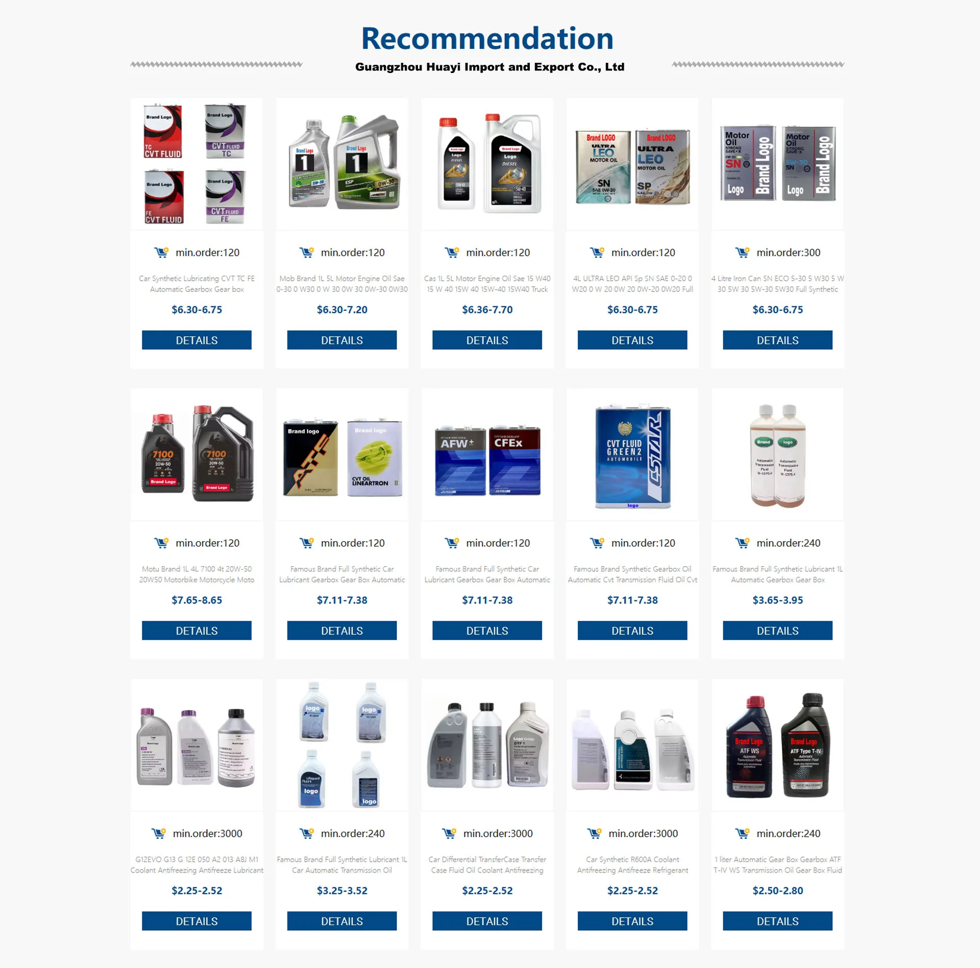 Productos principales:Aceite de motor, aceite de refrigeración, aceite hidráulico, aceite de engranajes, aceite de transmisión